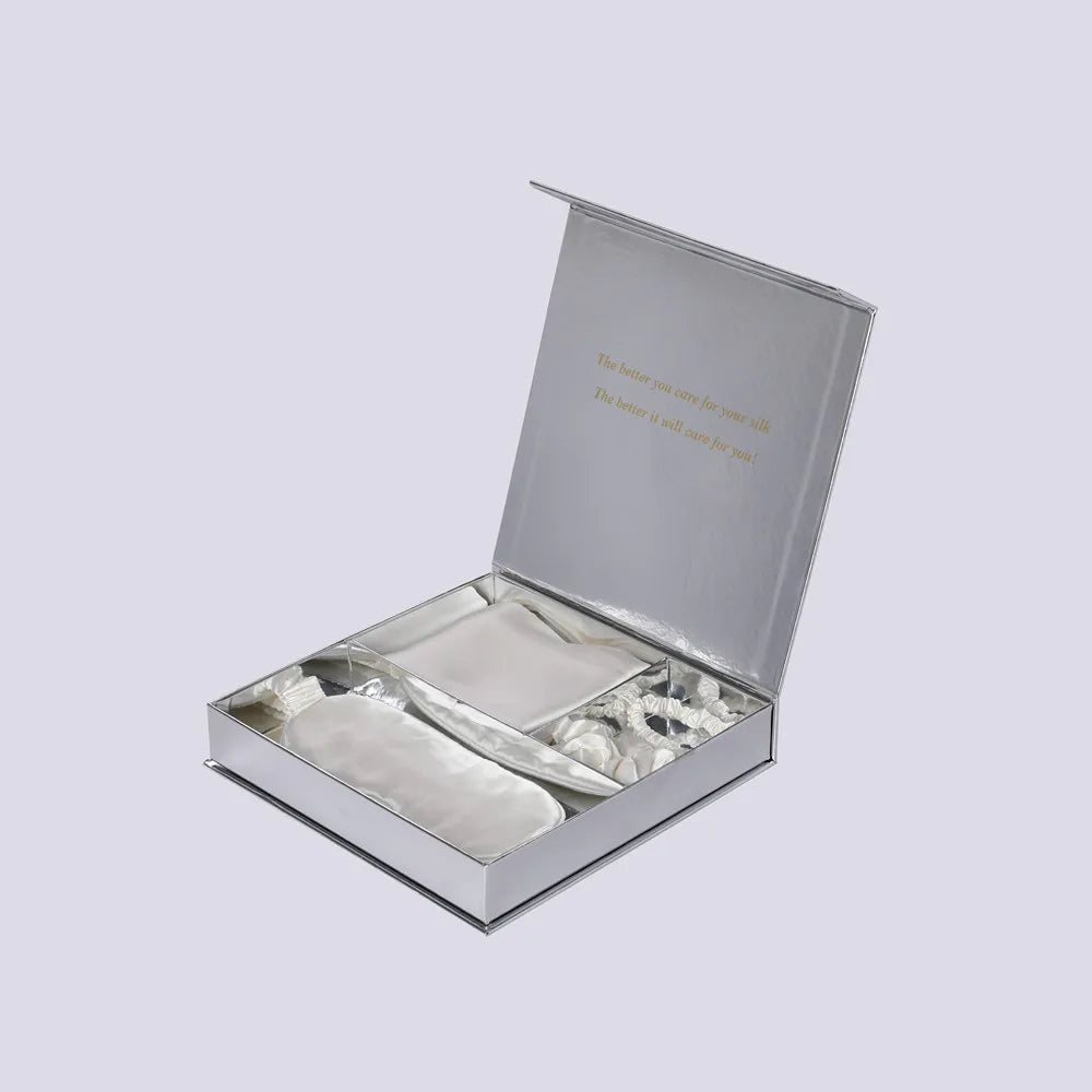 Offrez-vous une expérience de sommeil incomparable avec notre ensemble 3 pièces en soie de mûrier 100% naturelle.
